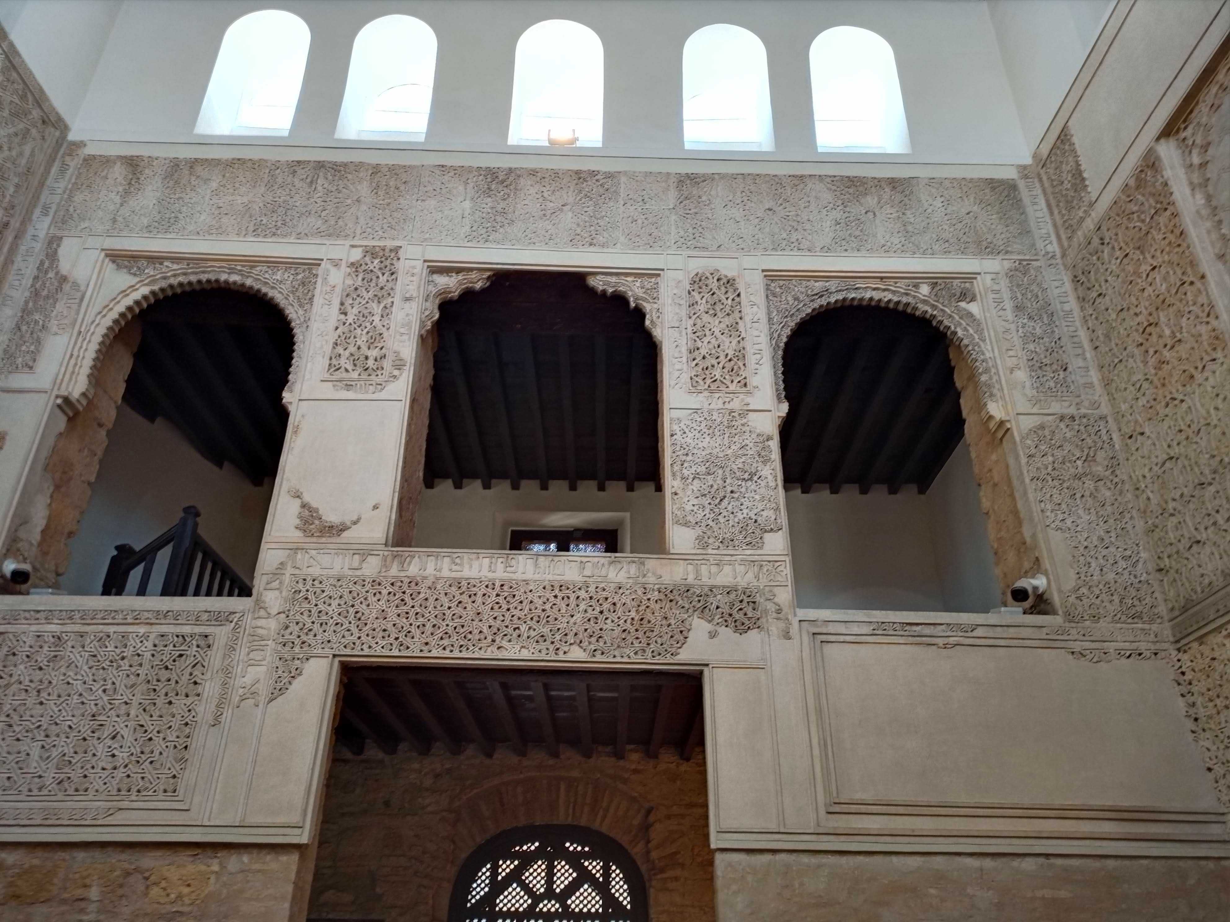 The women's gallery was located above and to the right of the prayer hall accessible directly upon entering the building. Of the fifteen windows above the prayer hall, twelve were open representing the twelve tribes of Israel.